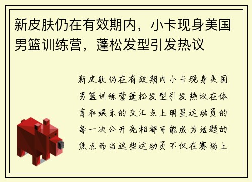 新皮肤仍在有效期内,小卡现身美国男篮训练营,蓬松发型引发热议
